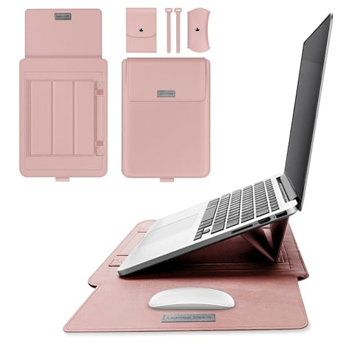 [SumNeol] パソコンケース 13 インチ/13.3 インチ/14 インチ 高級PUレザー 薄型 軽量 ケース バッグ 360°保護 PCケース 収納袋付き 撥水加工 多機能 通学 通勤 ビジネス 出張 旅行 PCスタンド機能付きMacBook/Dell/Ausu/Acer/HP/Lenovo/Samsung/富士通 対応 パソコンケース (13-14インチ, ピンク)
