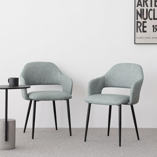 VENTOTAのダイニングチェア2脚セットは、肘付きでPUレザーのクッション座面が特徴。スチール脚を使用した北欧&ヴィンテージデザイン。疲れにくく、おしゃれでモダンな食卓椅子としてリビングやカフェに最適。