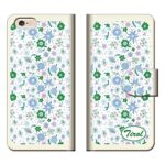 スマートフォンケース【らくらくフォン4専用】。花柄のデザインがかわいい手帳型レザーケース。シンプルでお洒落、北欧風の草や葉のモチーフ。二つ折りダイアリータイプで機種対応。