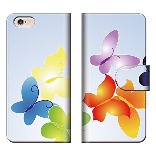 スマートフォンケース らくらくフォン 3 F-06F 専用の手帳型ケース。シンプルな蝶々柄で、ベビーブルー、橙、紺、黄緑、紫のカラーバリエーション。かわいく落ち着いた北欧デザイン、お洒落で人気のブック型レザー手帳カバー。