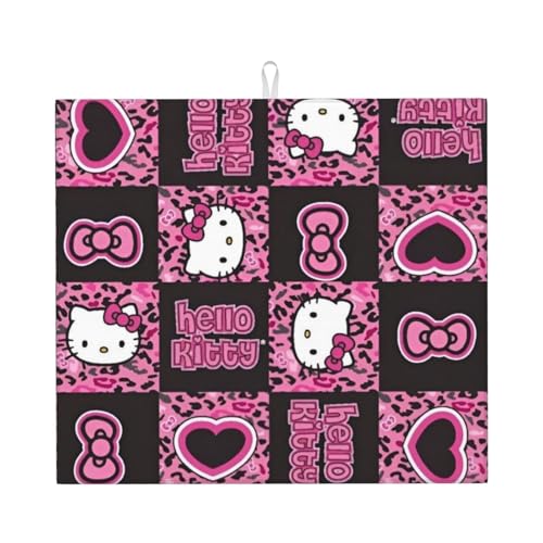 ハローキティのヒョウ柄水切りマットは、吸水性に優れ、食器乾燥や水切りに最適。丸めて収納でき、大判サイズで使いやすい。速乾性もあり、キッチンを可愛く演出するアイテムです。