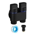 洗濯機用蛇口はステンレス製で、ダブルコントロール式の止水栓です。クイックオープンアングルバルブを採用しており、壁掛けトイレにも適しています。スタイリッシュなブラックデザインで、耐久性も抜群です。