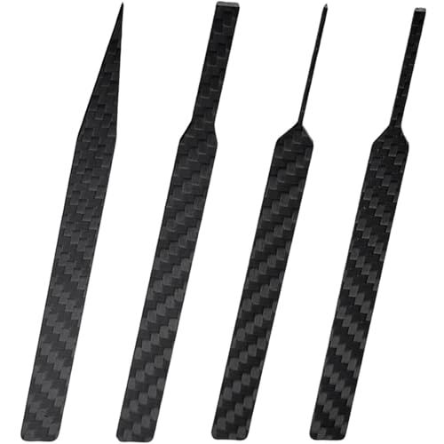 カーボンプレート4個セットの精密カーボン製ヤスリ板です。異型で超薄型のデザインが特徴で、プラモデルの細部仕上げに最適なホビー用工具です。