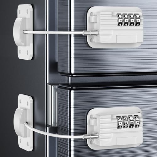 2025冷蔵庫ロックは、子供と大人用の安全対策として設計された2個パック。4つのコード付きで、工具不要で取り付け可能。冷蔵庫、冷凍庫、引き出し、キャビネットに使用できます。