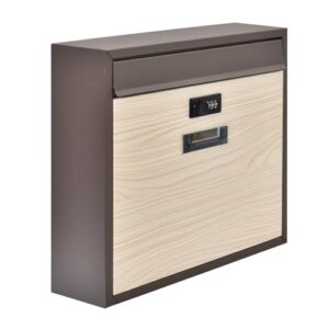 Fkstyle【壁掛けポスト】宅配ボックス ダイヤルロック式 木目調デザイン おしゃれ A4サイズ対応 大容量 縦型/横型選択可能! 奥行9cmスリム設計 防錆加工 簡単取付 玄関用 セキュリティ郵便受け メールボックス 戸建(ブラウン/ナチュラル)