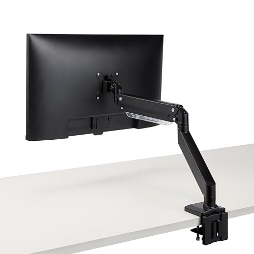 エレコムのモニターアームは、17インチから35インチのモニターに対応し、耐荷重は15kgです。ガス式で取り付けが簡単、VESA規格に対応。ブラックカラーでスタイリッシュです。