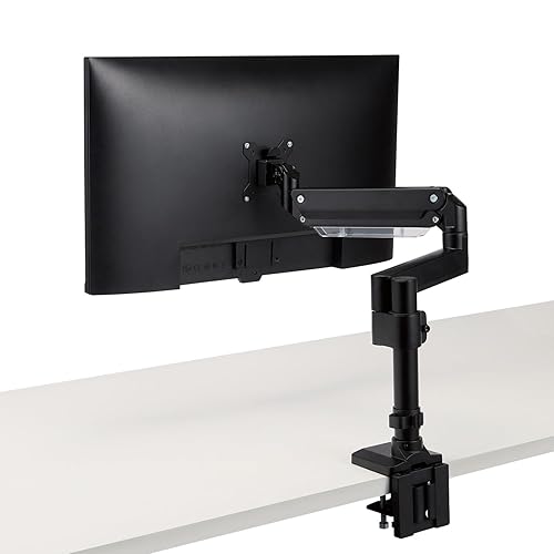 エレコムのDPA-SS10BKモニターアームは、17インチから35インチのモニターに対応し、耐荷重は15kg。ガス式で支柱式設計のため取り付けが簡単で、VESA規格にも対応しており、ブラック仕上げです。