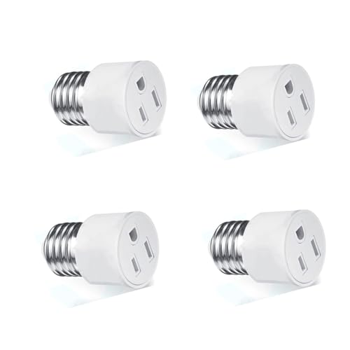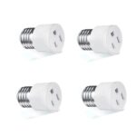 4個セットのE26電球ソケットアダプター。140度耐熱で2/3極変換に適合。ガレージや地下室など、作業場に最適な照明ソリューションです。