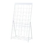 山善のパンフレットスタンドDPS-73(MWH)は、A4サイズ対応の3列7段で、幅79×奥行43.5×高さ146cmの折りたたみ式ディスプレイラックです。シンプルなマットホワイトデザインで、オフィスや店舗に最適です。