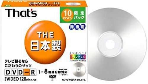 太陽誘電製のDVD-Rビデオ用メディアです。8倍速、120分録画可能で容量4.7GB、プリンタブル銀仕上げ。5mmPケースに10枚入っており、品質と信頼性が高いです。