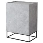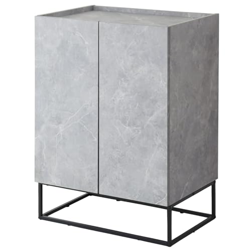 DORISドリスのサイドボードキャビネットは、幅60cmでスリムなデザイン。コンクリート調のストーングレイン仕上げが魅力。リビングやキッチンに最適な扉付き収納です。