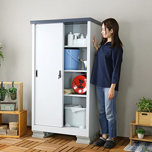 Bizdoris 収納倉庫は、幅90.5cm、高さ155cmの屋外用スチール収納庫です。タイヤやタイヤラックの保管に最適で、鍵付きのデザインでセキュリティも安心。カラーはグレー。