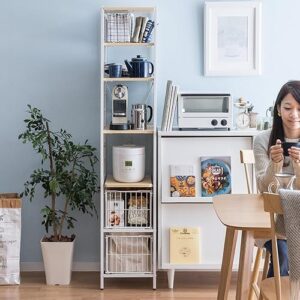 DORISドリスの収納棚は、幅60~80cm、奥行き45cm、高さ110cmのヴィンテージデザイン。キッチンラックやゴミ箱収納に最適。拡張可能で収納力抜群のアイテムです。