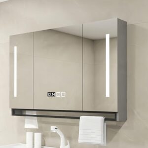 vvicoo 洗面所 鏡 多機能壁掛けミラーキャビネット 浴室お風呂 鏡スマート調光機能付き LED照明ミラーキャビネット洗面所 浴室 ミラー 曇り止め浴室鏡 収納付き 多層収納 防水 ファッション 省スペース 簡単収納 (80*75*12cm,グレー 1)
