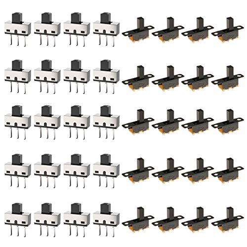 Youmileの20個のSPDTスライドスイッチは、3ピン2位置でDC50V、0.5A対応。高ノブデザインで、ラッチングトグルスイッチも含むミニパネルスイッチです。