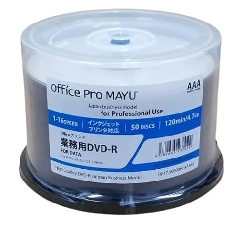 業務用 Officeブランド DVD-R 16倍速 ワイドロゴ無し 50枚 スピンドルケース入り (DR47JW600HI-AAA50)は、安定した品質でデータ保存に最適なメディアです。高速書き込み対応で効率的な利用が可能です。