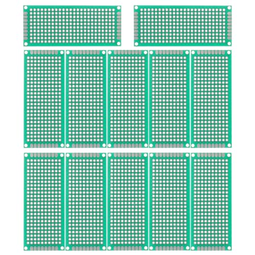 NUOLUXの3×7両面錫メッキユニバーサル回路基板。2.54mmピッチ、エポキシグラスファイバー製。実験用試作として最適、12個セットで電子工作向けに設計されています。