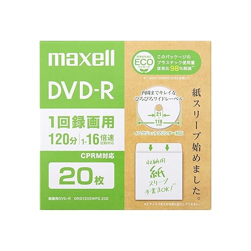 マクセル録画用DVD-R DRD120SWPS.20Eは、エコパッケージで1~16倍速対応。CPRM対応のひろびろワイドレーベルデザイン。録画・保存に最適なディスクです。