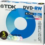 TDKデータ用DVD-RW 1-2倍速インクジェットプリンタ対応。5枚パック、カラーミックスで、データ保存やバックアップに最適。耐久性に優れ、印刷面が特に鮮やかです。