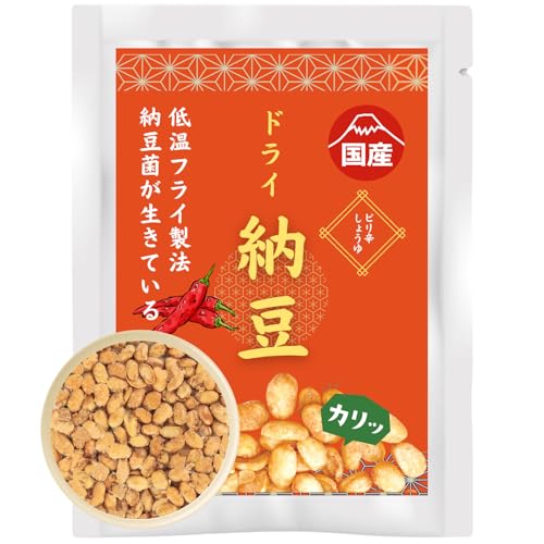 ドライ納豆 ピリ辛醤油 100gは、軽いつまみや健康食品として人気です。納豆の栄養をそのままに、ピリ辛醤油の風味で楽しめます。リッチな旨みとサクサク感が特徴で、手軽に食べられるおやつとして最適です。