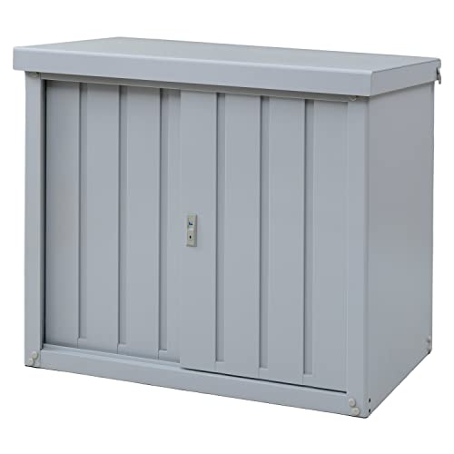 [山善] ガーデンマスター物置は、幅90×奥行60×高さ84cmの大型収納庫で、鍵付き、転倒防止設計、可動棚板が付属しています。おしゃれなライトグレーで、屋外の収納に最適です。