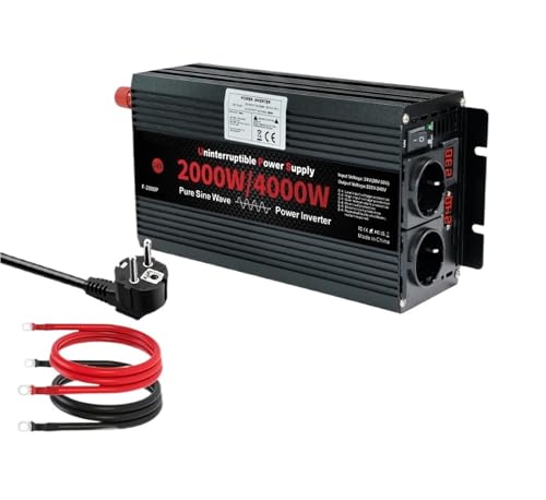 2000W/4000W純正弦波インバーター。DC12Vまたは24VをAC110V/220Vに変換。無停電電源装置としても使用可。充電電流は15A/8A(24V-220V EU 50Hz)。