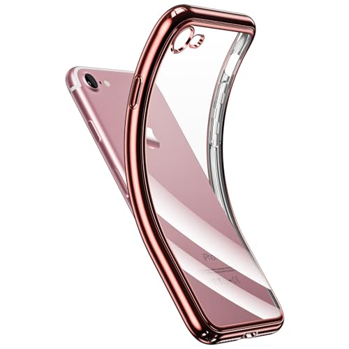 NIMASOのケースは、iPhone SE(第3世代)、SE2、8、7用の軽量TPUカバーです。基本的なデザインで、ローズゴールドのバンパーが特徴です。4.7インチに対応しています。