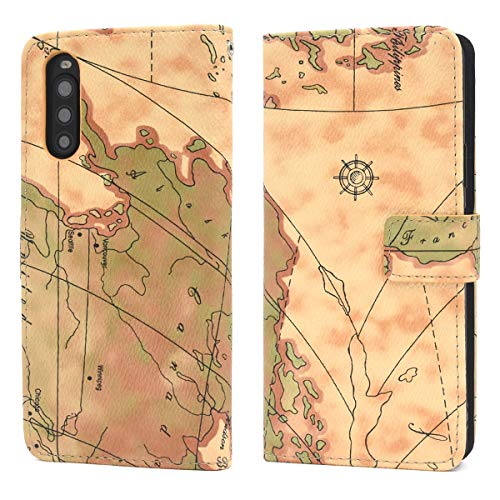 Xperia 10 II SO-41A / SOV43専用の手帳型ケース。地図柄のアンティークデザインでレトロ感あり。スタンド機能付き、エクスペリア10マークツーを保護します。
