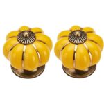 かぼちゃデザインの引き出しノブ。セラミック製で、40mmのサイズ。家具やキャビネット、食器棚に最適な取っ手。フレッシュな黄色がポイントで、インテリアを明るく彩ります。2個セット。