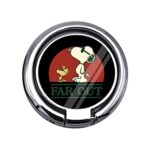 スヌーピーデザインのスマホリング。薄型・多機種対応で、スタンド機能あり。強力固定で片手操作も可能。180度・360度回転式で取り外し簡単。