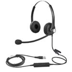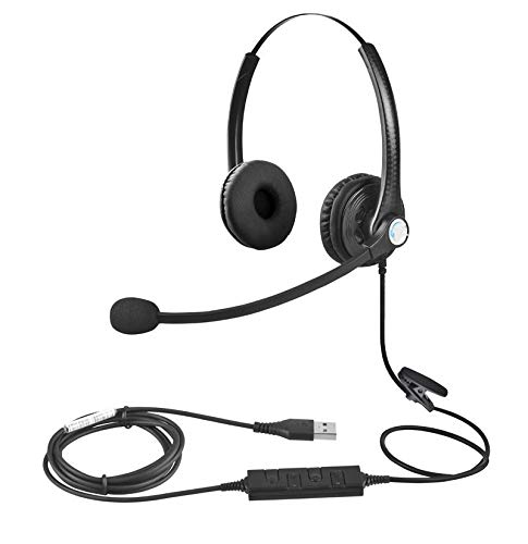 USBマイク付きヘッドセット、両耳タイプ。ビジネス用、Skype、コールセンター、ビデオ会議に最適。ノイズキャンセリング機能付きでクリアな音質。PCやノートパソコンに対応。