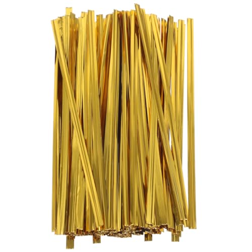 ラッピングタイ ワイヤータイ ゴールド 800本セット。長さ12cmで、プレゼント包装や袋止めに最適。おしゃれなデザインの針金ケーブル結束バンドとして、包装や結束用品、留め具として幅広く活用できます。
