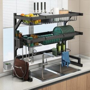 水切りラック シンク上 食器乾燥 2段式 水切りかご 皿乾燥 キッチン 収納棚 省スペース 炭素鋼 食器収納ボックス 食器かご シンク横 台所用品ホルダ