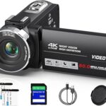 4K録画、8000万画素のビデオカメラ。3.0インチIPS HD画面、18倍デジタルズーム、IRナイトビジョン搭載。270度回転可能なスクリーン、自撮り機能付き。32GB SDカード、1500mAh電池、軽量で持ち運び便利。旅行Vlogや学生に最適。