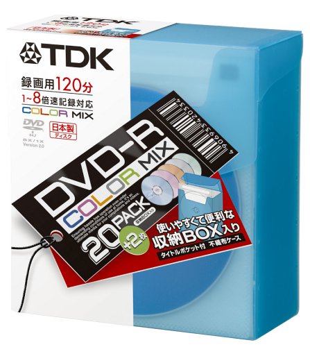 TDK DVD-R録画用は1-8倍速記録対応のディスクで、5色のカラーミックスが楽しめる不織布入り22枚パックです。120分の映像を記録できます。