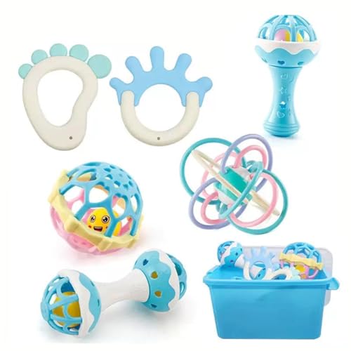 6 PCSセットの歯固めとハンドガラガラのおもちゃは、赤ちゃんの初めての玩具として人気です。0歳から1歳向けで、知育にも適したデザイン。出産祝い、誕生日、クリスマスプレゼントに最適!
