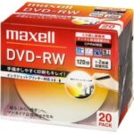maxellの録画用DVD-RWは、120分の録画時間を持ち、2倍速で対応。インクジェットプリンタ対応のホワイト面(ワイド印刷)を採用し、20枚入りで5mmケースに入っています。