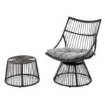 PEラタン製 ガーデンファニチャーセット 2点セット ベージュ×グレー 手編みデザイン 厚手クッション付 高さ調整可能 屋外用家具 簡単組み立て テラスチェア リビングチェア ベランダテーブルの高価買取