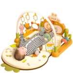 2025年新登場のベビープレイマット。0-1歳向けで、おもちゃ付き。知育合成遊具としてペダルピアノやベビージムを搭載。運動啓蒙や感覚刺激を促し、安全設計。取り外し可能で、出産祝いにも最適なプレゼントです。