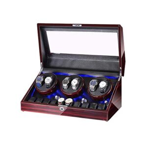 時計ワインダー6個+10個収納、LEDライト、ウッドシェルピアノペイントエクステリア、レザーインテリア、サイレントモーター