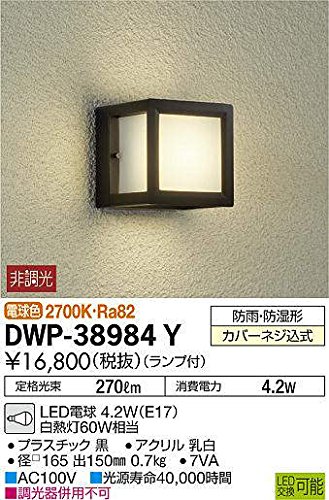 大光電機(DAIKO) アウトドアライト 【ランプ付】 LED電球 4.2W(E17) 電球色 2700K DWP-38984Yの製品情報