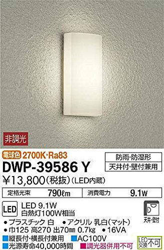 大光電機(DAIKO)のアウトドアライトDWP-39586Yは、LED内蔵で9.1Wの消費電力、電球色2700Kの暖かな光を提供します。屋外の使用に適した耐久性が特徴です。