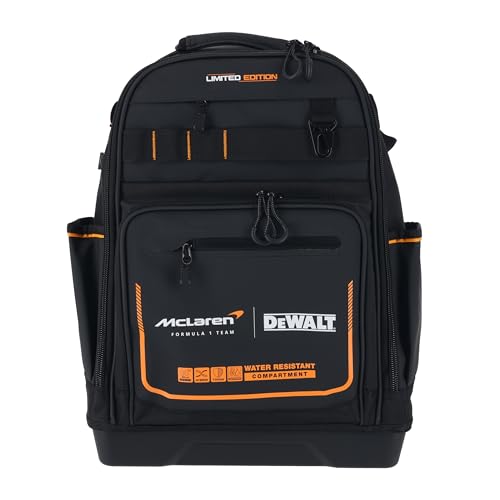 デウォルトのバックパックは、マクラーレンとのコラボ製品で、撥水性と撥塵性に優れた耐久性を備えています。多くの収納スペースがあり、工具や道具の整理に最適です。モデル番号はDWST60122-1です。