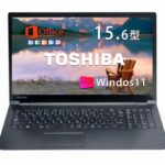 東芝の整備済みノートパソコンDynabook B45。OSはWindows 11 Pro、MS Office 2019 H&B搭載。第6世代CPU、16GBメモリ、256GB SSD、HDMI、Wi-Fi、Bluetooth、10キー、DVDドライブ付き。