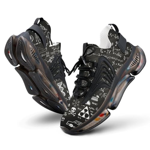 科学柄のスニーカー、数学数式デザインのランニング・ウォーキングシューズ。軽量で滑り止め、防臭、通気性に優れ、通勤やアウトドアに最適。サイズは8women/6men(EUR39)。