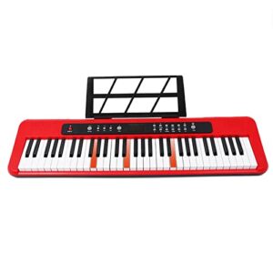 61鍵鍵盤 ピアノ照明付きキー ポータブル電子楽器 キーノートステッカー付き マイク内蔵スピーカー デジタルミュージック 子供と初心者のためのピアノキーボード(色:赤)