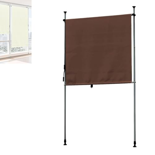 NILoykg& オーニング 巻き上げ 日除け シェード 屋外 ベランダ サンシェード 巻き上げ式縦型シェード オーニングシェード 風よけ 防水PU つっぱり式サンシェード 目隠し機能付き 窓・庭用 日除け 雨よけ UVカット,E,幅100cmの高価買取
