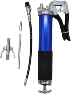 高圧グリースガン、7000PSI、400ccのレバー式で手詰対応。カートリッジ兼用、小型デザイン。ホースとノズル付属で、大容量、耐久性も優れ、スムーズな注油が可能。車や機械のメンテナンスに最適。
