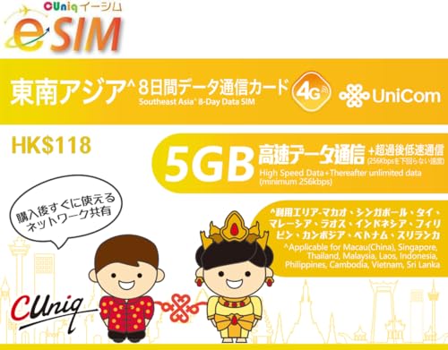 このeSIMは東南アジア10カ国で利用可能ですが、中国では使用できません。ダウンロード版のため、対応機種確認と納期・ダウンロード方法を必ずご確認ください。
