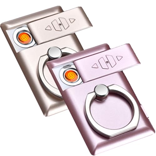 電子ライター2個セット(ゴールド&ピンク)。USB充電式、ガスやオイル不要で繰り返し使用可能。軽量薄型で持ち運び便利、防風設計。プレゼントや防災グッズにも最適。